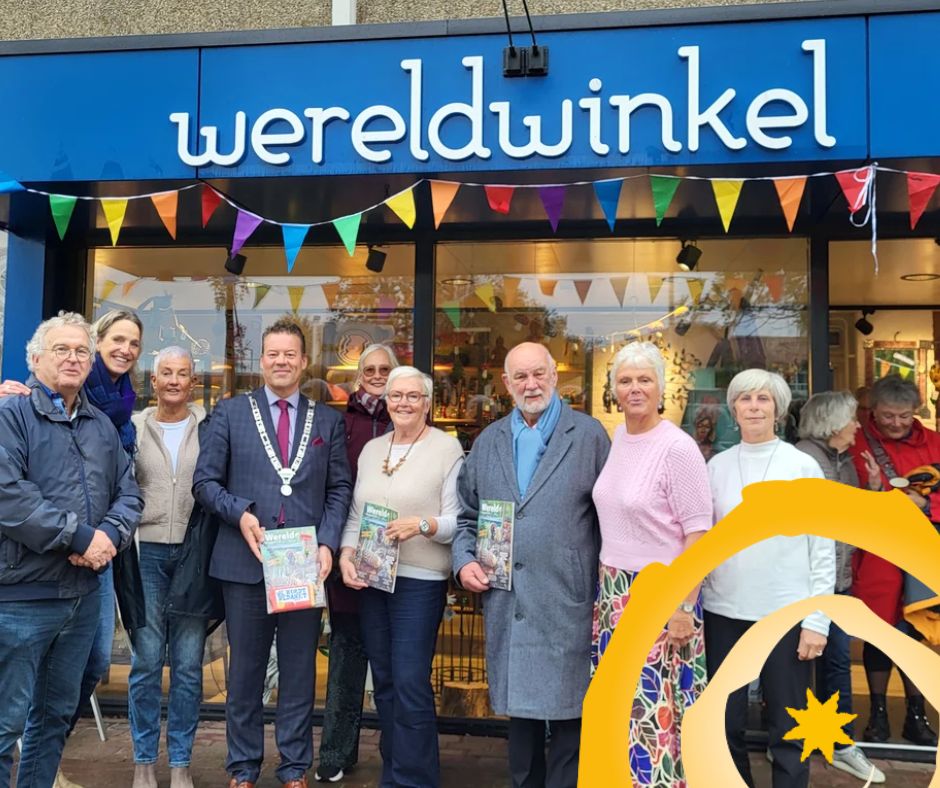 De Wereldwinkel Castricum vierde maandag 6 oktober haar 55-jarig bestaan met een feestelijke bijeenkomst. Burgemeester Ben Tap sprak zijn waardering uit voor het enorme vrijwilligerswerk dat de Wereldwinkel al decennia verricht, onder meer voor goede doelen zoals Stichting Mariëtte’s Child Care.